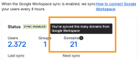 - The Tooltip next to it says "You've synced this many domains from Google workspace"