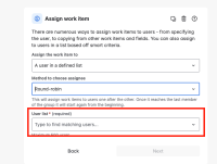 The 1 work item should be assigned to user A at a single round, but the user B and C should be assigned multiple tickets in single round.