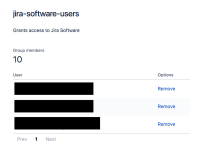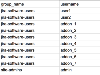 4. When exporting the users' list (Users > Export > mark *Group membership) we can see the 10 users related to that group (3 regular users and 7 system-users).