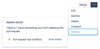 If a user tries to merge a pull request with squash-ff-only strategy, and the merge fails due to the fact that target branch has another commit which doesn't exist on the source branch when the user wants to do a rebase – the rebase button is then greyed out apparently due to merge conflict. However, when the pull request page is refreshed, the rebase option is then available again.