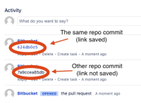 [8dd91d1f6d846ec80045699d7ad1ee85395e22ef](/projects/MY_PROJ/repos/my-repo/commits/8dd91d1f6d846ec80045699d7ad1ee85395e22ef) // or [see this commit](https://BITBUCKET_URL/projects/MY_PROJ/repos/my-repo/commits/8dd91d1f6d846ec80045699d7ad1ee85395e22ef)