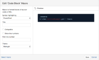 - Search for the Code Block Macro