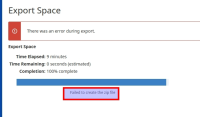 2018-09-20 13:32:06 ERROR com.atlassian.confluence.importexport.DefaultSpaceExportService Could not finalize space export task with Zipper java.lang.RuntimeException: Idle for too long com.atlassian.confluence.importexport.DefaultSpaceExportService.handleZipperProgressUpdateEvent(DefaultSpaceExportService.java:230) sun.reflect.NativeMethodAccessorImpl.invoke0(Native Method) sun.reflect.NativeMethodAccessorImpl.invoke(NativeMethodAccessorImpl.java:62) sun.reflect.DelegatingMethodAccessorImpl.invoke(DelegatingMethodAccessorImpl.java:43) java.lang.reflect.Method.invoke(Method.java:498) ... ..