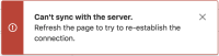 When users are Editing Pages in Confluence, they often get an error message in the top right corner of the screen with a message that says: Can't sync with the server. Refresh the page to try to re-establish the connection.