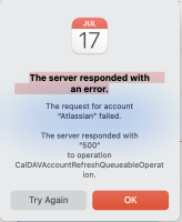 Synching a calendar with calDav Synchronizer on MacOS errors out with 500 code