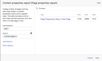 - Create another page and insert the Page Properties Report macro, referencing the first page.