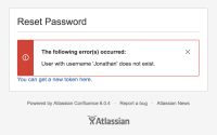 When users with spaces in their usernames are sync'd into Confluence from an external directory (e.g. Active Directory), they are unable to reset their password due to the following error: