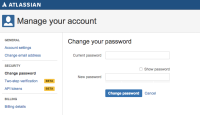 Today if a user decides to change his password on id.atlassian.com he has two fields, one with his current password and another field to input the new password, however, this can be prone to human errors since there is no field to check if the new password matches.