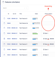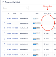Features without parent objects should be listed at top or bottom of sort order depending on direction and numbers in parent object titles should be sorted based on whole number instead of the first digit