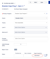 Dates for this capability are constrained by the dates set on the parent portfolio epic. Pick dates between 08/31/2023 and 08/31/2023.