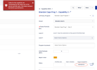 - Create child Capability with Target Completion date that falls before Epic's date. Save and observe error: