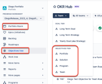 At the portfolio level, when viewing the OKR hub, it displays the Portfolio/Program/Team Tier.