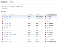 Status column are not ordering in the order specified. For example, the custom statuses created would not order together with the default statuses in the issue navigator. This means that it will separated into 2 set of sorting orders which are default statuses and custom statuses. Example: