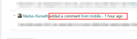 When using the Jira Mobile app (IOS or Android) to comment on a Jira issue, the comments now contain a note of "sent from mobile" in the top line of the comment header along with the user account and time of message.