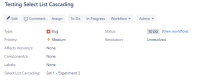Testing Select List Cascading,Bug,To Do,Set 1 -> Experiment 1
