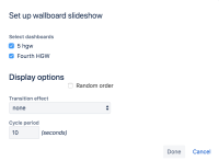 - Click on Set up wallboard slideshow -> check both the dashboards -> Done: