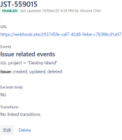 Webhook does not trigger for 'convert to subtask' issue operation despite being configured to listen to issue update event.