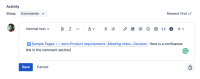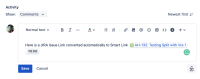 - Adding a Confluence Link in the Issue comment: (Converted to Smart Link)