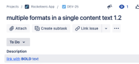 If the external link( hyperlink) has a Bold word, The Issue editor interprets it wrong and saves it in the DB with a markdown tag thus causing search API with expand=renderedFields option to bring malformed HTML.