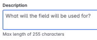In the new UI for the Fields page in settings, there is a new character limit for the field description.