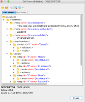 Looking up the Workflows on the database, it will show that the XML is malformed. Here's a comparison with a different and well formed Workflow XML displayed in DBVisualizer:
