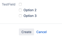 Starting with Jira 8.4.0, checkbox options that consist of a single blank space will no longer render on the Create Issue screen. See below screenshots for clarification.