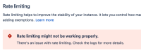 In the UI, we can see the following error in the "Rate Limiting" page: