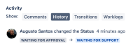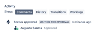 Currently, approvals are displayed only on the "Comments" section of ticket activity, with the change of status being displayed on the "History" section.