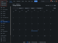 When creating Change Request in Change Calendar, the context menu appears in top-left of browser when in Month view.