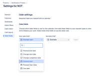- Change Start date field or End date field to any custom Date Picker field and click Save:
