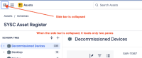 In the assets new user interface (Assets as an app UI) left pane appears when the page is refreshed while the sidebar is collapsed.
