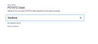 When typing in a search word in the customer portal, articles should auto populate or a message saying “No solutions found.” should appear (if nothing matches the search). The below screenshot shows an example of a search for a keyword that does not exist in the KB: