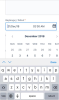 When trying to edit a time/date picker field on the portal via a mobile web browser, the keyboard on iOS cannot be minimized so that the entire calendar/time picker is visible. The page scroll is locked - so it's not possible to scroll up/down to reveal the hidden portion(s) of the calendar/time picker. Android users are able to minimize the keyboard and choose the desired date/time.