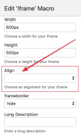 - The "width" setting in the iframe macro settings seems to change the iframe width, but "height" doesn't seem to do anything