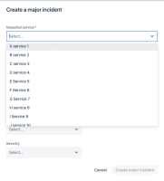 Screenshot of the Create a Major incident screen displaying only 10 Services: