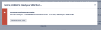 We can't find your customer email notification rules. To fix this, restore your email rules.
