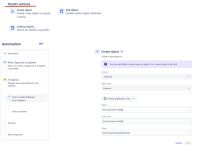 We observed that in JSM Cloud there is a kind of integration between A4J and Assets, making Asset actions available in A4J, and consequently making it possible to create object triggers.