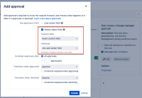 4. Go to the default Change Management workflow for JSM and add approval to the first status "Peer review / change manager approval":