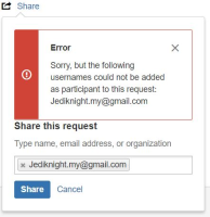- Remove the user as request participant and now try to share the same request to Test@gmail.com
