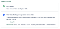 The CDN tool has a warning informing that Insight is not fully compatible with CDN.
