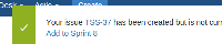 1. When logged in as administrator, the user is able to create an issue, from the active sprint view, using the Create button. After creating the issue, there will be a pop out which says "Your issue XXX-XX has been created but is not currently visible. Add to Sprint X"