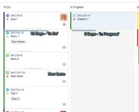 Currently issues that are new or have been in a Column for a few days show a light grey indicator on a white card. As the issue 'ages' the color changes gradients from light to a darker grey.