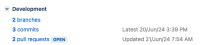 Preexisting pull requests are not showing in the development panel when you create a DVCS account afterward or re-create an existing DVCS account and clean the DEV Panel cache.