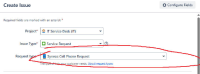 However, if we add the Request Type to the Create Issue screen, it will show a random type, and setting a default is not possible: